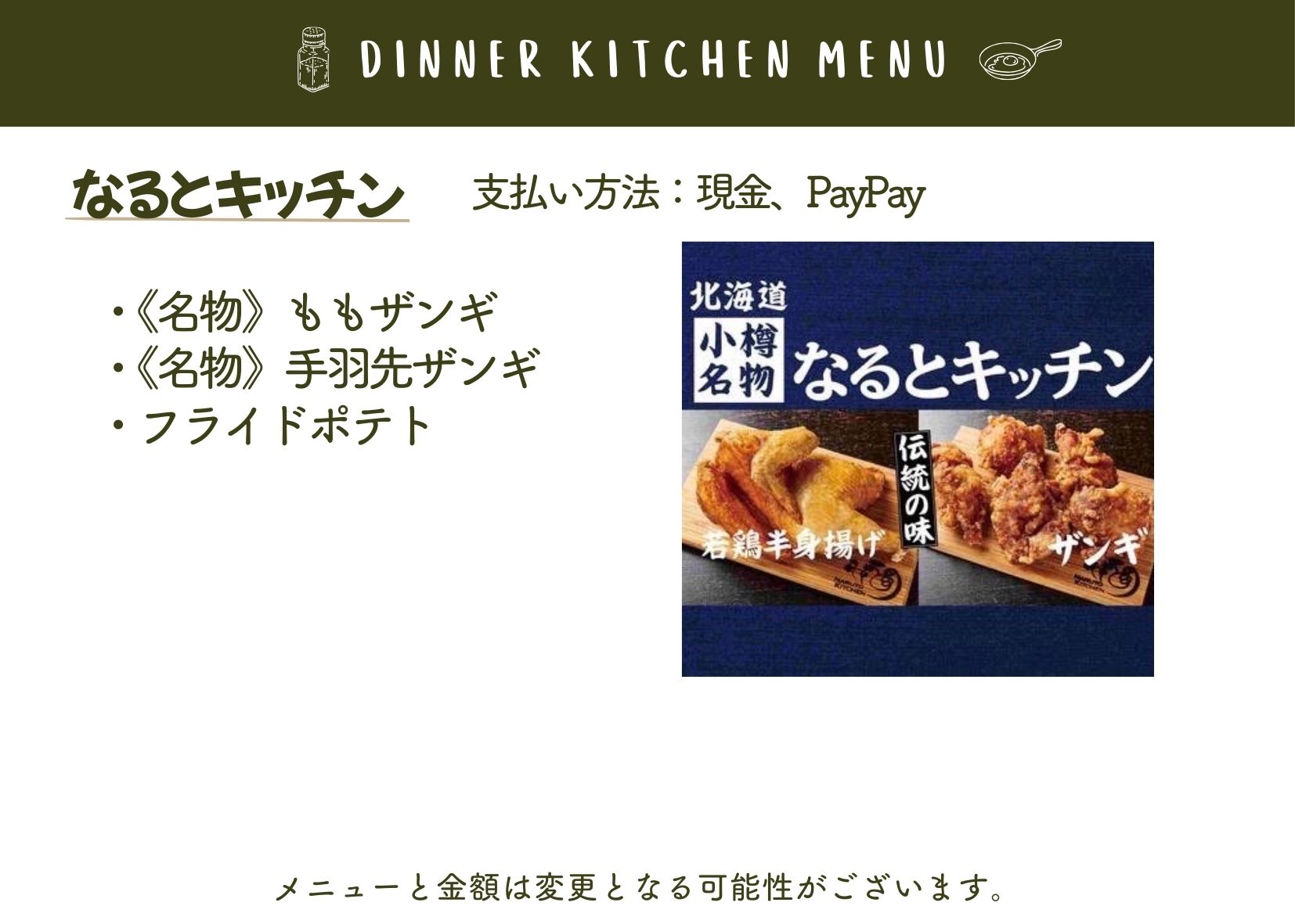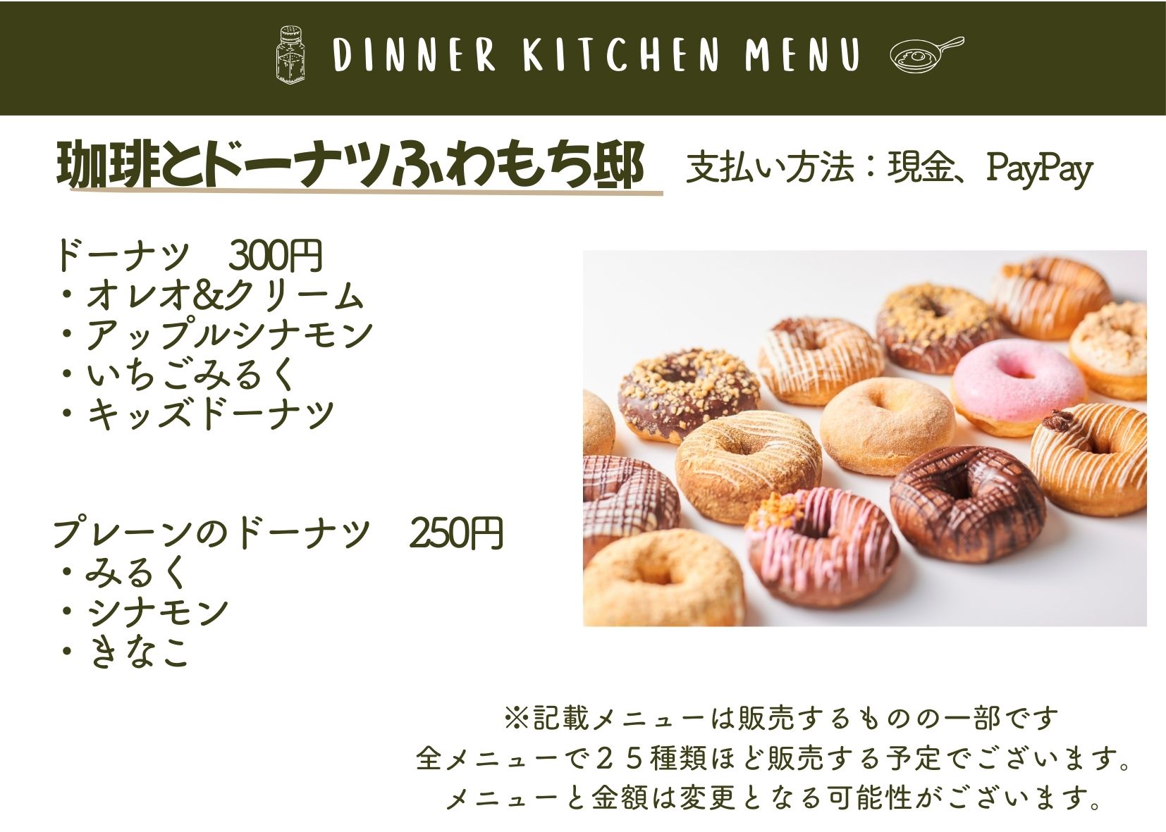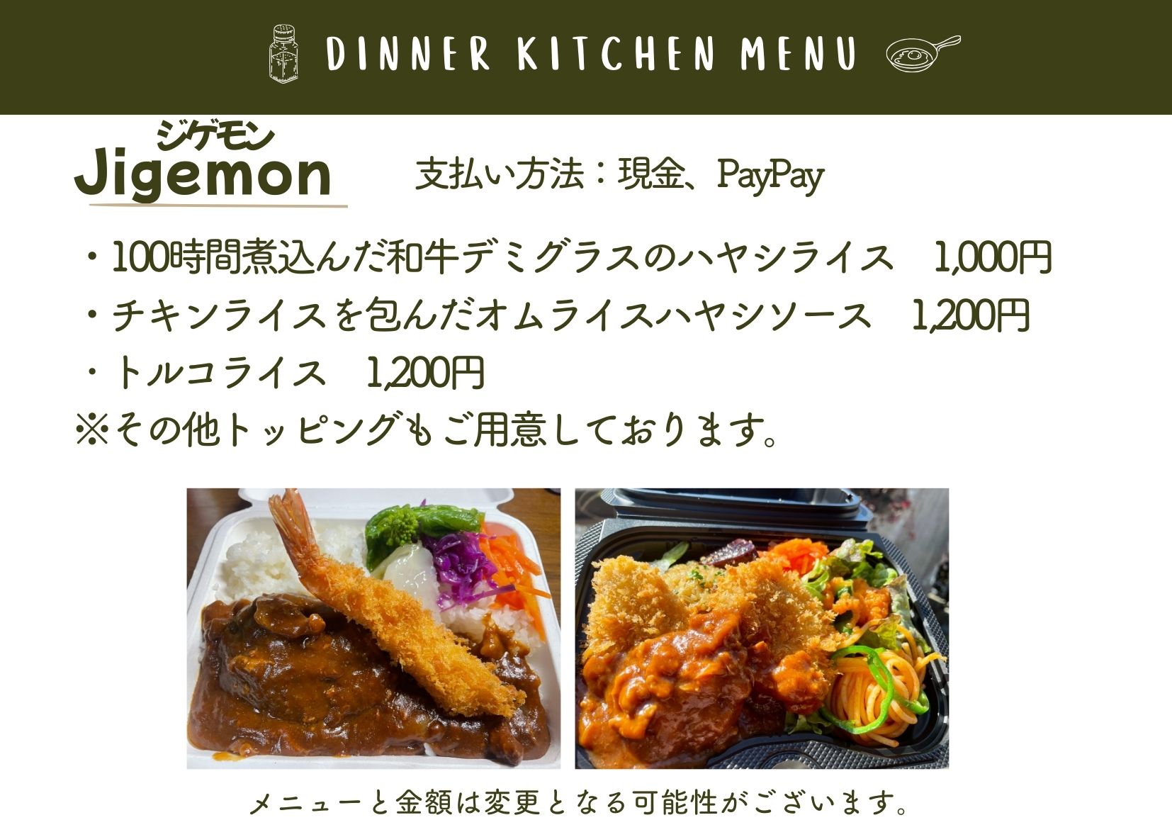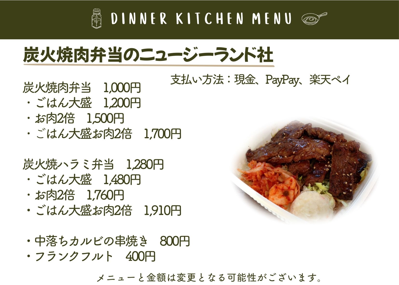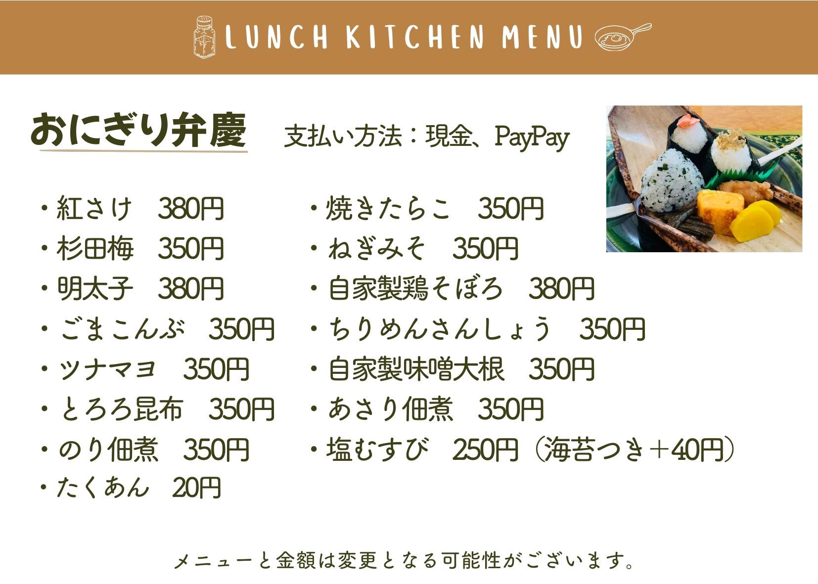 当日は、メニュー内容が変更となる場合や、売り切れにより販売できない場合がございます。